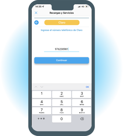Ingresael número telefónico y monto a