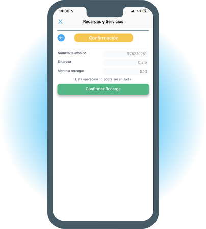 Ingresa el número telefónico y monto a